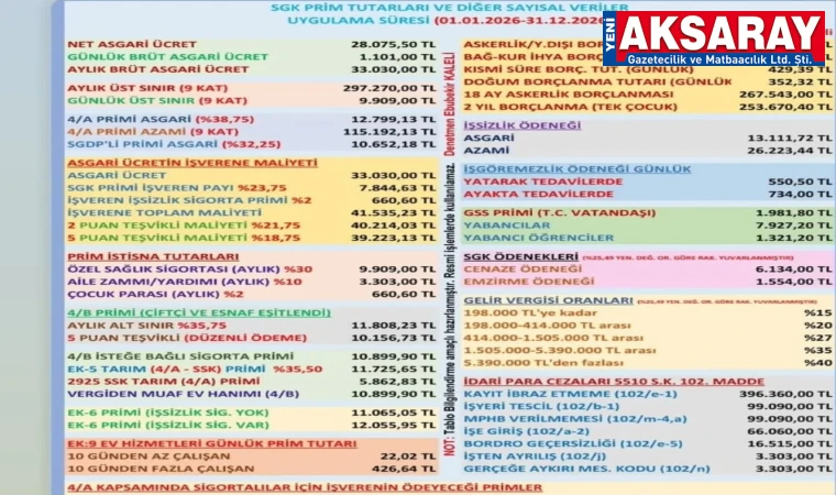 Not: 2026 yılı boyunca asgarî ücretin brüt tutarına tekabül eden gelir ve damga vergisi istisnası devam edecektir.*ERDEM SÜDEMEN