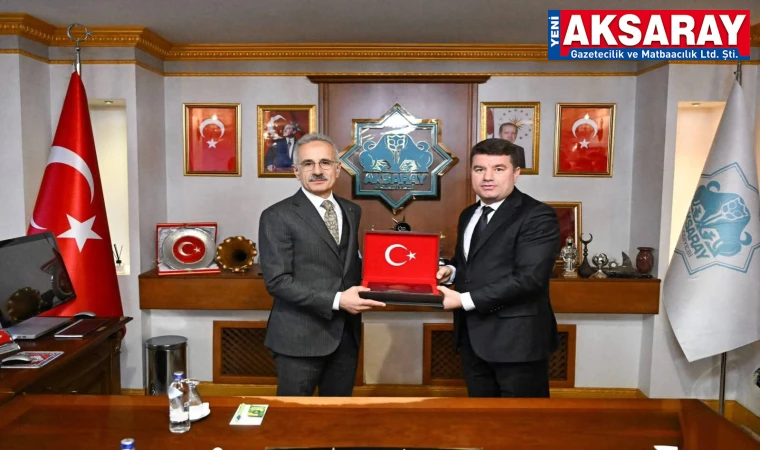 Ulaştırma ve Altyapı Bakanı Abdulkadir Uraloğlu ve beraberindeki heyet, Aksaray Belediye Başkanlığı ziyaretinde Belediye Başkanı Dr. Evren Dinçer tarafından karşılandı. Başkan Dinçer’in ev sahipliğinde gerçekleşen ziyarette, Belediye Meclis Üyeleri de hazır bulundu.