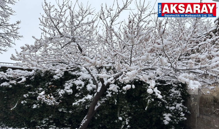 Hava sıcaklığının eksi 2'ye kadar düştüğü Aksaray'ın Güzelyurt ilçesi sabaha karşı yağan kar ile adeta beyaza büründü. Çiçek açmış meyve ağaçları karla kaplanırken, ilçe halkı don tedirginliği yaşıyor.