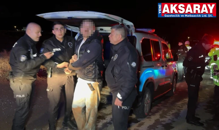 Olay, Fatih Mahallesi Hürriyet Caddesi üzerinde meydana geldi. Edinilen bilgiye göre, 112 Acil Çağrı Merkezine gelen iki grubun kavga ettiği ihbarı üzerine olay yerine polis ekipleri sevk edildi. Kısa sürede bölgeye intikal eden polis ekipleri olaya müdahale etmek isterken, bir şahıs koşarak 42 AYV 910 plakalı hafif ticari araca binip kaçtı. Ne olduğunu anlayamayan polis ekipleri, şahsın peşine düştü. Polisin defalarca megafonla yaptığı ‘dur’ ihtarına uymayan sürücü hızla kaçmayı sürdürdü. Ekibin kaçış istikametini telsizden bildirmesi üzerine Aksaray emniyeti adeta alarma geçerek, bölgeyi abluka altına aldı. Şehirde kaçamayacağını anlayan sürücü, polis ekiplerini atlatmak için arazi yoluna girdi. Sürücü, yolda bulunan kanalı fark etmeyince aracıyla birlikte kanala uçtu. Araç içerisinden çıkan ve çamur içinde kalan sürücü, yaya olarak kaçmak isterken yakalandı.
