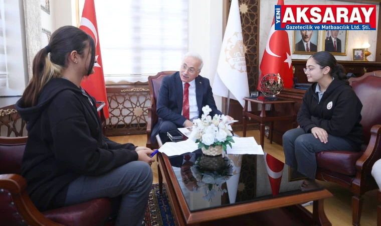 Aksaray Valisi Mehmet Ali Kumbuzoğlu, makamında bu kez geleceğin yazarlarını ve gazetecilerini ağırladı. Mustafa Yazıcı Ortaokulu Türkçe Öğretmeni Yunus Türkan ile okul öğrencileri Şevval Rana Dinç ve Gökçe Su Köse, okul bünyesinde hazırlanan Çanakkale temalı özel dergi çalışması kapsamında Vali Kumbuzoğlu’nu ziyaret etti.