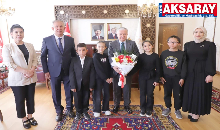 Vali Duru, 23 Nisan Ulusal Egemenlik ve Çocuk Bayramı kapsamında İl Milli Eğitim Müdürü Metin Alpaslan ile Hacı Cumali Uğur İlkokulu öğretmen ve öğrencilerini makamında kabul etti.