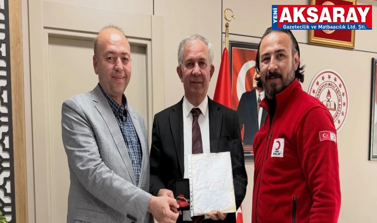 Türk Kızılay Aksaray Şubesi, kan bağışı konusundaki örnek duyarlılığı nedeniyle İl Millî Eğitim Müdürü Metin Alpaslan’ı makamında ziyaret ederek "Altın Madalya" ile onurlandırdı.