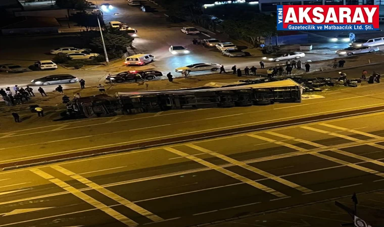 Edinilen bilgiye göre kaza Tacin mahallesi makas mevkiinde meydana geldi. Özgür Y.(32) idaresindeki 06 plakalı tır Tacin Mahallesi Konya caddesine geldiğinde bir anlık dalgınlık sonucu virajı alamayarak yan yattı. Dorse içerisinde bulunan sebzeler kasalar halinde yola dağıldı. Kazayı gören çevredeki vatandaşlar durumu 112 acil çağrı merkezine bildirdi. İhbar üzerine olay yerine 112 sağlık ve polis ekipleri sevk edildi. Kısa sürede olay yerine gelen sağlık ekipleri yaralı sürücüye olay yerinde ilk müdahaleyi yaptı. Polis yolda güvenlik önlemleri alarak ikinci bir kazanın yaşanmaması için kontrollü geçişe izin verdi. Yaralı sürücü ambulansla Aksaray Üniversitesi Eğitim Araştırma Hastanesine sevk edildi. Tir vinç yardımı ile olay yerinden çekilerek yol tekrar trafiğe açıldı. Polis kazayla ilgili soruşturma başlattı. *TALAT BELGE